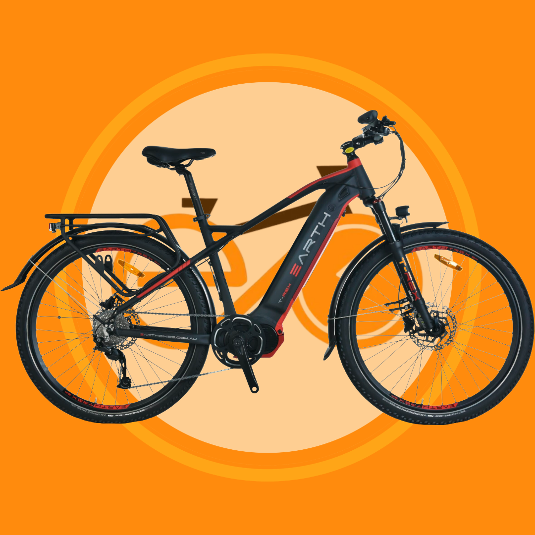 EARTH T-Rex 650B SP Trekking includes quality brand bike components, Shimano Alive 9 speed gears, Shimano Hydraulic brakes, Schwalbe Moto X puncture-proof tires, and tubes, heavy-duty rear rack, front & rear mudguards, front led lights and rear light, Promax adjustable stem and massive 48V 600Wh Samsung lithium-ion battery power pack, and with an OPTIONAL SECOND MOUNT BATTERY PACK, is one of the largest battery capacity of any branded e-bikes in Australia.