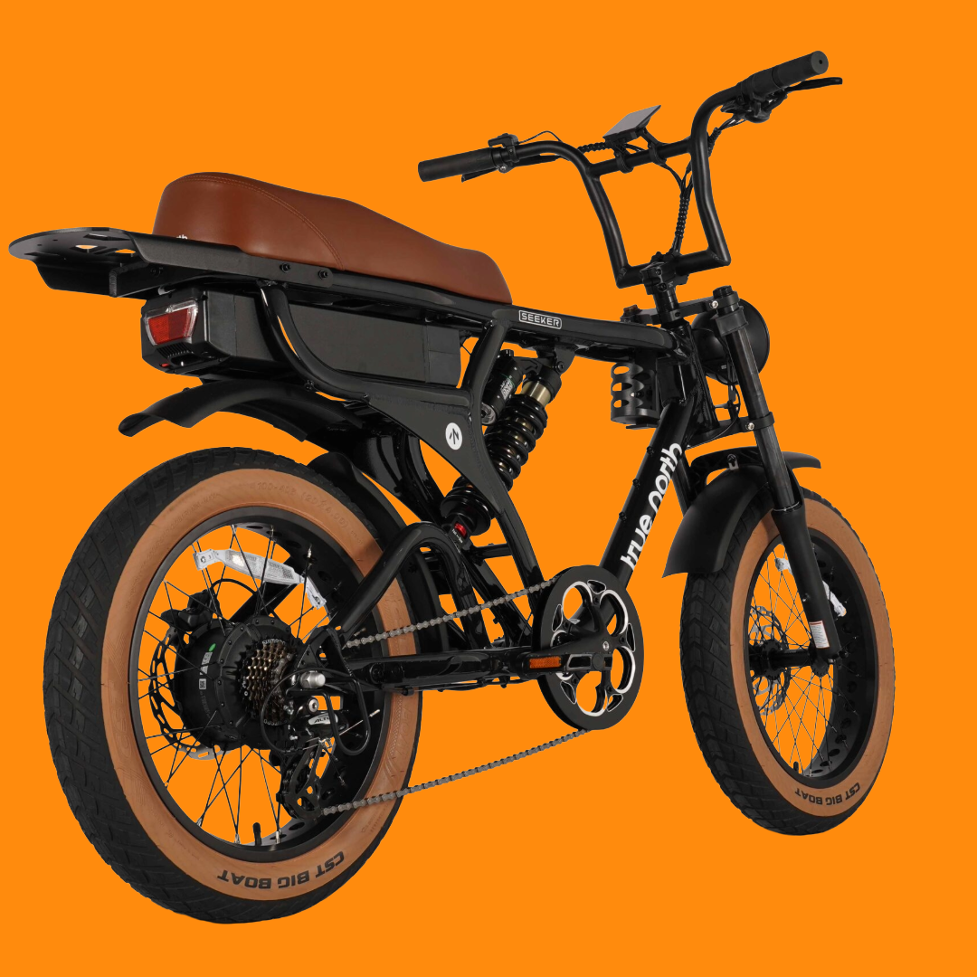 .The Seeker Retro isn’t just another fat tyre electric bike. Built specifically for Australian riders, it’s engineered to deliver effortless style, smoother rides, and greater comfort. Beyond the classic brown seat and tyre trim, the Retro is also 5% lighter than the standard Seeker model for improved efficiency and easier handling.